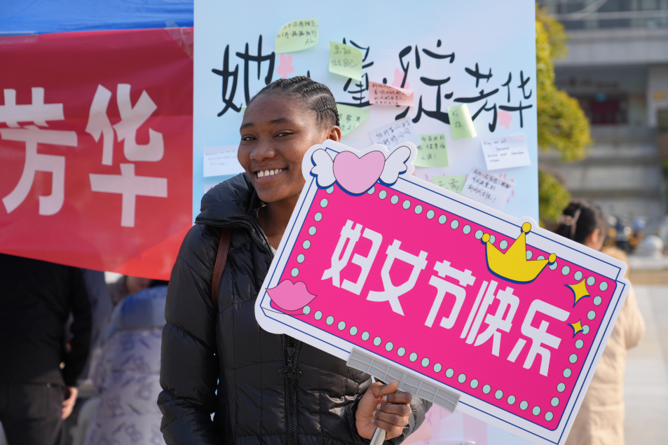 活动还吸引了来自韩国、戛纳等多个国家的外国留学生参与。她们对妇女节相关活动充满好奇,在我院学子的帮助下学习制作手工花,并且在祝福海报上留下自己对女性的理解和祝福。