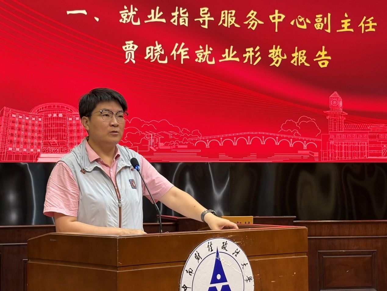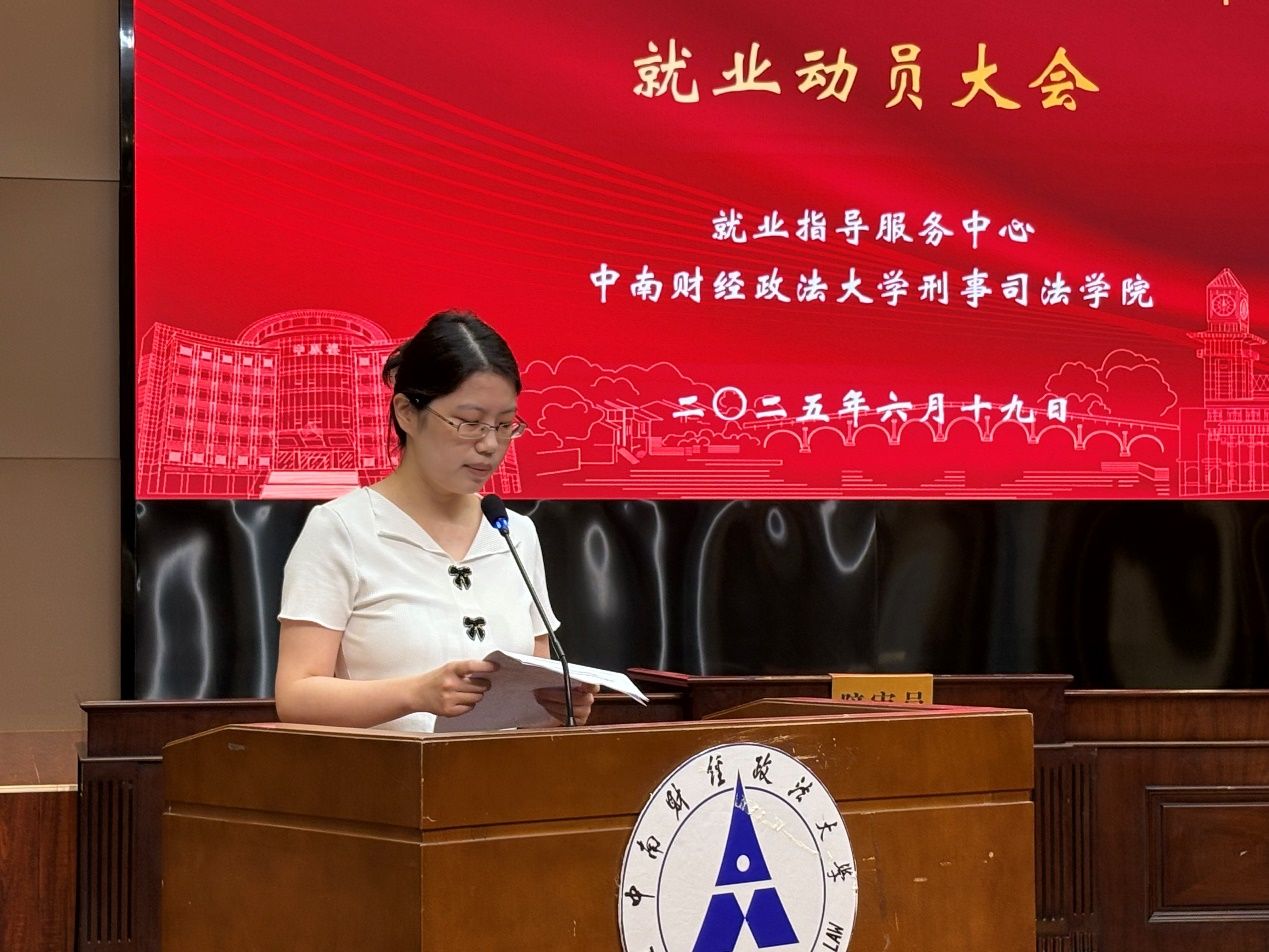 新闻网讯(学生通讯员 朱彬彬)为贯彻落实学校关于就业工作部署要求,进一步加强毕业生就业指导服务工作力度,6月19日上午,刑事司法学院在文泰楼模拟法庭一召开2026届应届毕业生就业动员大会。刑事司法学院党委书记张志刚、就业指导服务中心副主任贾晓、刑事司法学院党委副书记徐庆祥、2026届毕业生辅导员赵轶以及2026届全体本科毕业生参会。会议由赵轶主持。