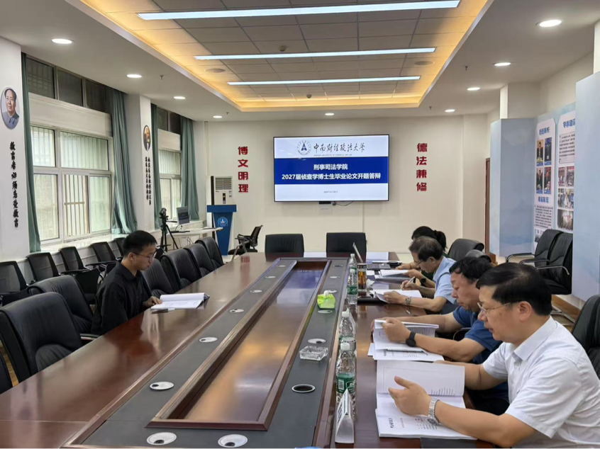 (学生通讯员 王江昕)2025年6月29日上午9时,我院2023级侦查学博士生论文开题答辩会于文治楼二楼会议室进行。答辩主席由我院杨宗辉教授担任,闫平教授、董邦俊教授、付凤教授担任答辩委员会委员。博士生施剑、陈安超、付琳、范田雨、张思晗参加开题答辩,答辩秘书由王江昕担任,同时现场还有各级博士生旁听。