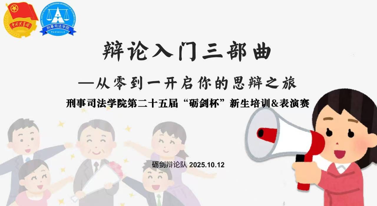 新闻网讯(学生通讯员 李琰 王一森 鲍渊赫)10月12日,刑事司法学院砺剑辩论队在文波楼111智慧教室举办第25届"砺剑杯"辩论赛新生培训会。本次培训会通过系统的赛制讲解、精彩的表演展示、专业的技巧解析以及规范的礼仪培训,为新生辩手搭建了全方位了解辩论、走近辩论的平台。