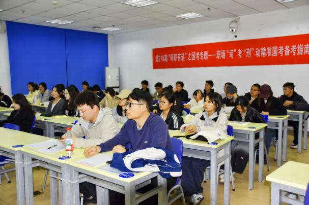 本次讲座围绕科学备考、岗位选择等核心维度为同学们提供深刻启示与专业指导。三位嘉宾以丰富的实战经验为我院学子破除考公认知迷障,为学子在公职备考赛道上夯实基础、行稳致远保驾护航,助力大家实现高质量就业目标。