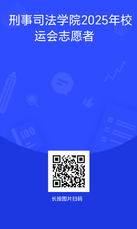 请有意向参与学院志愿者的同学及时填写下方“问卷星收集表”并加入“2025年刑事司法学院校运会志愿者”微信群,以上两项完成可视为报名成功。