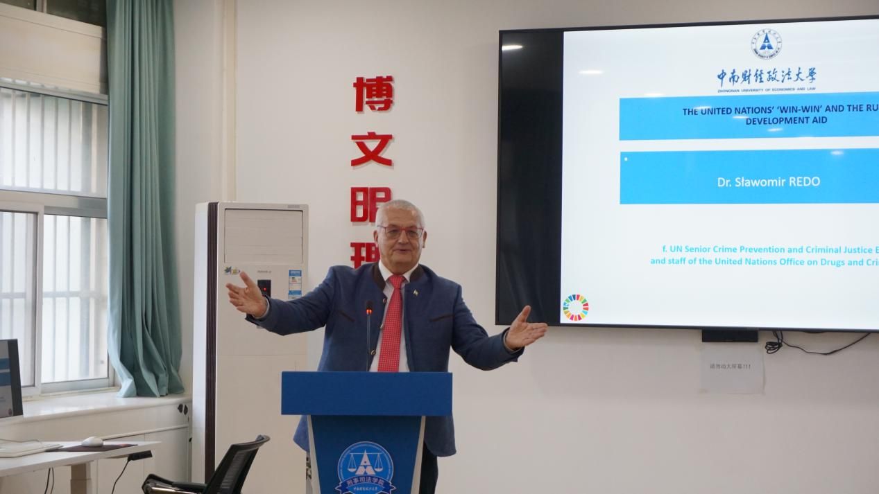 讲座特邀联合国法律客座教授斯拉沃米尔·雷多(Slawomir Redo)担任主讲嘉宾,围绕“联合国的发展援助中的‘双赢’与法治原则”展开。讲座由刑事司法学院副院长周凌教授主持,米兰电竞·(中国区)社会治理法学学科带头人徐汉明教授参加讲座。