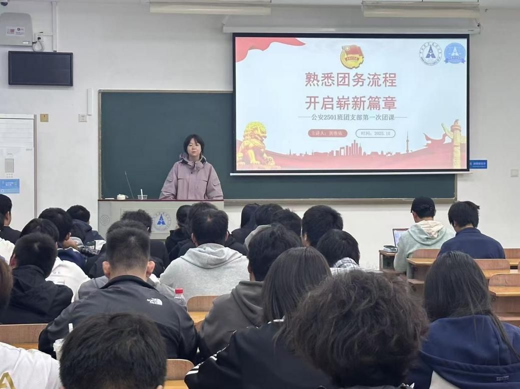 新闻网讯(学生通讯员 黄维依 黄汉庭 向湘慧)为帮助支部成员快速熟悉团务工作规范,明确自身角色与责任,增强班级凝聚力与集体归属感,11月5日,公安2501团支部于文泰楼开展“熟悉团务流程,开启崭新篇章”主题团课活动。本次活动由班级团支书黄维依同学主持,团支部共38名同学参与。