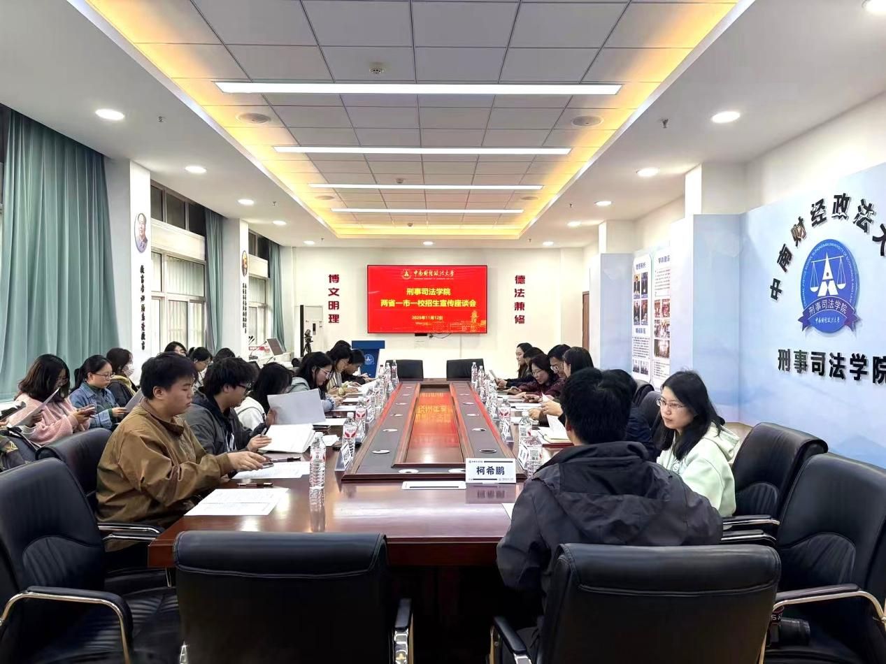 为全面了解师生对招生工作的意见与建议,切实提升招生宣传实效与生源质量,11月12日下午,刑事司法学院“两省一市一校”招生宣传座谈会在文治楼二楼会议室顺利召开。本科生院招生工作办公室主任石凌,招生计划科科长穆帆、招生宣传科科长杨安琪,刑事司法学院党委书记张志刚,党委副书记、纪委书记司志莲,警事科学系教师党支部书记张敬副教授,本科生辅导员赵轶、柯希鹏,以及来自河北省、贵州省、潜江市与华科附中的新生代表共同参会。