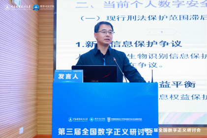 安徽师范大学法学院院长、教授郭泽强围绕“个人数字安全刑法保护体系”,指出当前刑法存在保护范围滞后、未体现数据特性等现实困境,主张从立法、司法、体系、治理四层面系统完善,以应对数字时代安全风险与保护需求。
