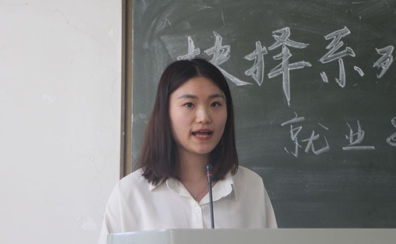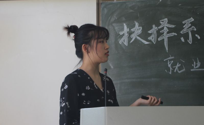 最后上台的是王伟华。她主要介绍了对公务员以及公考的一些认识。她提醒大家在考公务员之前最好找一份工作保底,确定职位时要报符合的岗位等等。同时,她也提醒同学们要以和平的心态面对公考。