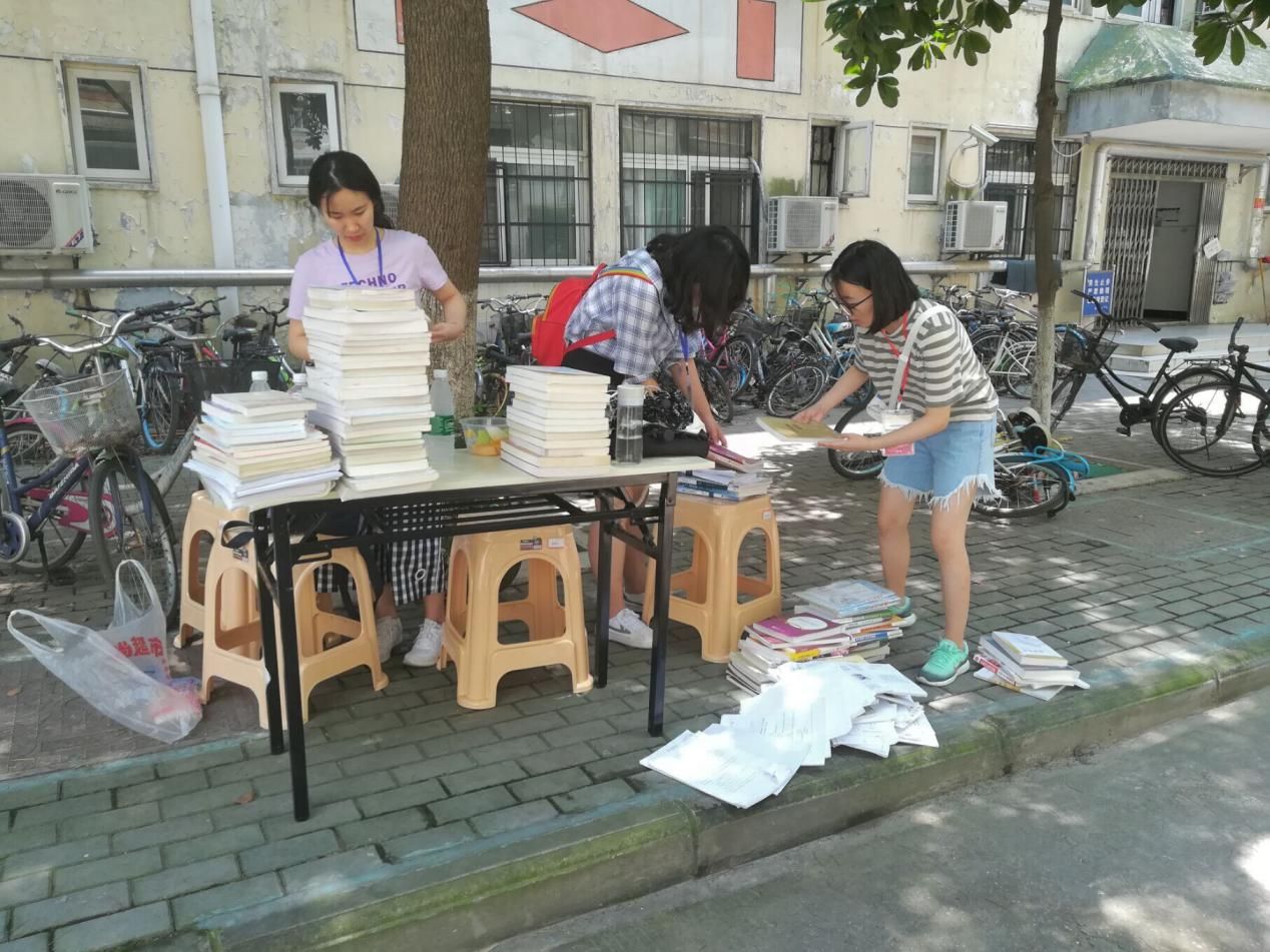 10日下午十一时三十分,志愿者们在文泉楼门口集合,前往办公室搬运活动需要的桌椅。志愿者们分为两拨,三名男生和四名女生分别在环湖公寓6栋和16栋下摆好桌椅。当有师兄师姐经过时,志愿者上前询问是否了解此次活动以及是否有待处理的旧书,也有师兄师姐主动询问捐书的相关事项。由于中午时间楼下经过的师兄师姐较少,志愿者决定前往师兄师姐的宿舍宣传活动,在志愿者的礼貌询问后,很多师兄师姐表示有一些书想要捐出。