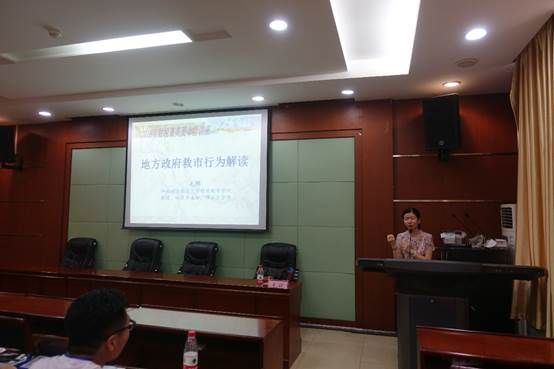 开营仪式结束后,正式进入夏令营环节,由财政税务学院财政系主任毛晖教授做《地方政府救市行为解读》专题讲座。首先,毛晖教授由时事热点中地方政府的救市行为来让学员们讨论其背后意义,引出营员们的强烈兴趣。接着,毛晖教授从地方救市行为的具体措施、体制原因和具体效应这三个方面来对地方救市行为进行解读。对每一个问题和制度的解读,毛晖教授都会引经据典,结合历史和现代,给与营员们深刻的体会和理解。最后毛晖教授预祝营员们在本次夏令营中学到知识并心想事成。