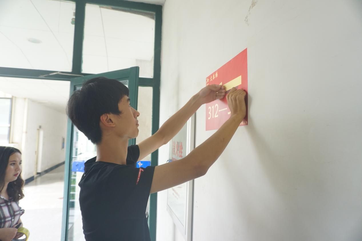 9月13日下午2时,志愿者们在文泰楼集合,在领取美化道具和材料后,前往文澜楼、文泰楼、南湖东站等主要区域,张贴指引条幅,美化校园,营造校庆氛围。