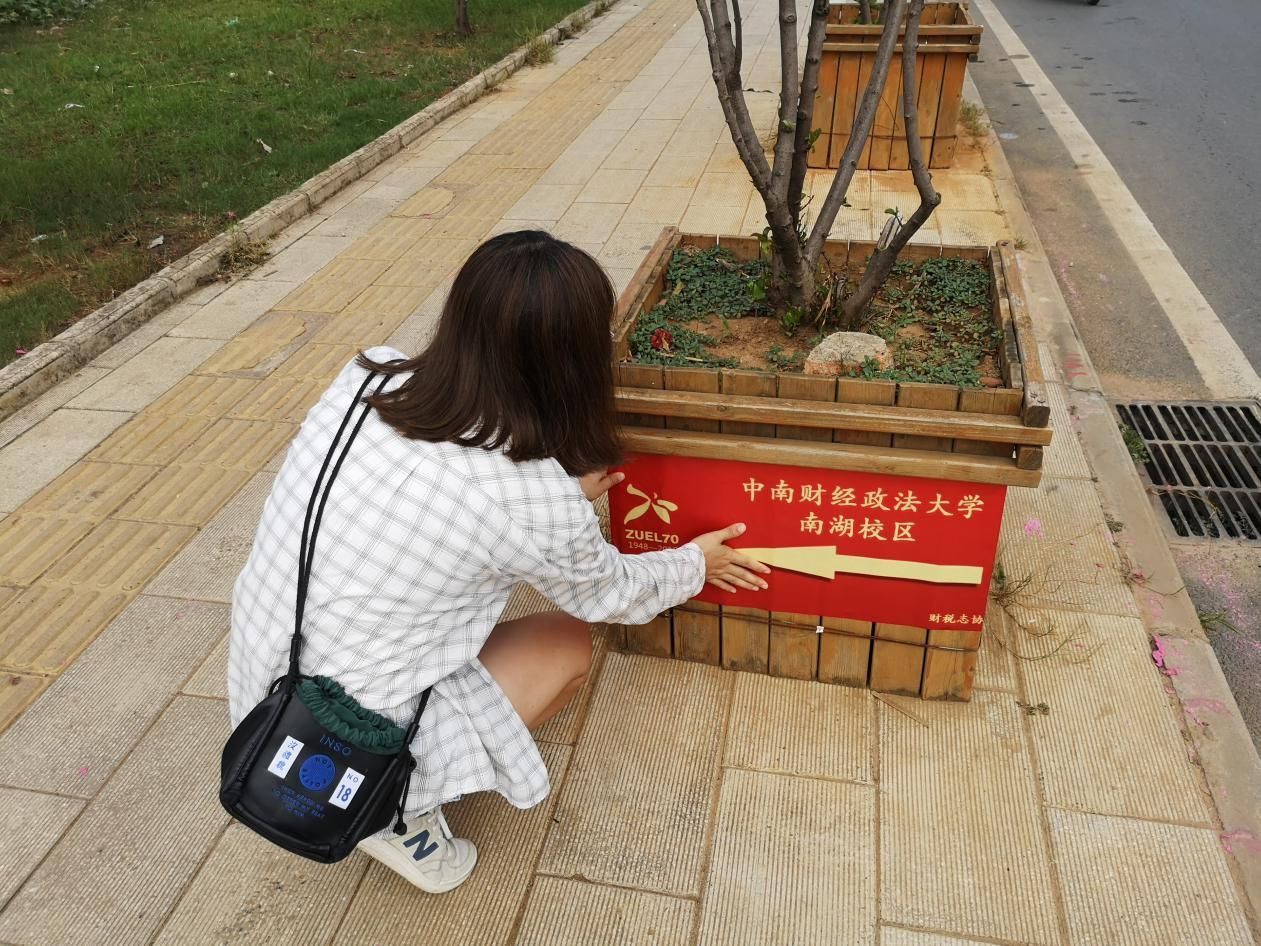文澜楼与文泰楼是中南大南湖校区的主要教学楼,平时在这里上课与自习的同学们也相对比较多。志愿者们在每层楼选择合适的地方,张贴引导的条幅。在张贴过程中,志愿者们也遇到了难题——教学楼里已经有过同样的指引条幅。志愿者们认真思考,不断对比合适的位置,仔细挑选能够产生互补作用的位置,尽最大可能照顾好不同来向的同学,使他们都能够看到指引。