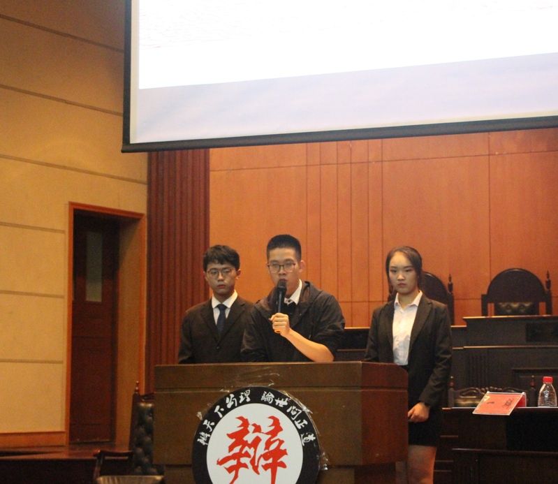 新闻网讯(学生记者 谭成杰 摄影 李思琪)2018年10月25日下午16:00,财政税务学院第十届“思辩杯”新生辩论赛决赛于南湖校区文泰楼模拟法庭一隆重举行。经过初赛、复赛的激烈角逐,两支队伍从中脱颖而出,会师决赛。莅临决赛现场的嘉宾有财政税务学院分团委书记、18级辅导员唐皓,财政税务学院分团委副书记、16级辅导员韩睿子。担任本次比赛评委的是知识产学院研究生、校辩队优秀辩手肖郁钧,财政税务学院研究生学院优秀辩手岳泽昊,财政税务学院辩论队第七届队长、校演讲与辩论协会优秀辩手杨雨聪,文澜学院辩论队队长、校辩队优秀辩手李志远,刑司学院辩论队队长、校辩队副队长卢李语涵。