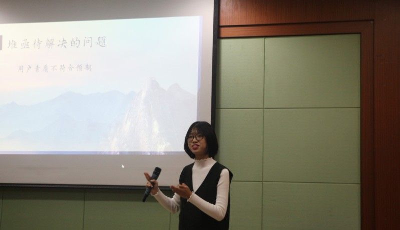 其后ZUELER-石楠小分队介绍了他们的悦跑中南项目。他们计划打造一个集运动与社交为一体的平台,为学生提供普通陪跑和专业陪跑的业务,并对此进行收费。该项目针对大学生独自跑步积极性较差的现象,陪伴跑步者并为他们的锻炼提供安全保障。