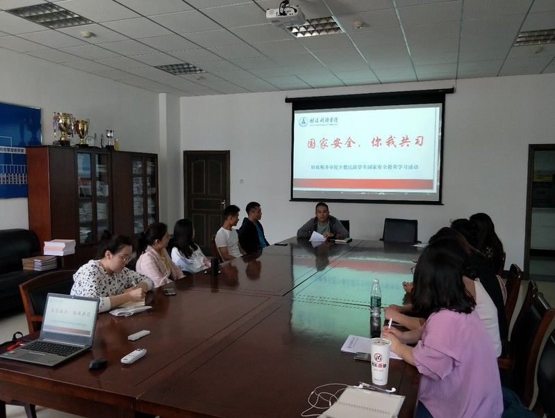 2019年4月17日中午13点,“国家安全,你我共习”——财政税务学院少数民族学生国家安全教育学习活动于文泉楼504会议室举行。此次安全教育学习活动由财政税务学院少数民族辅导员木拉提· 依不拉音木江主持,学院各年级14名新疆籍少数民族同学参加此次学习活动。