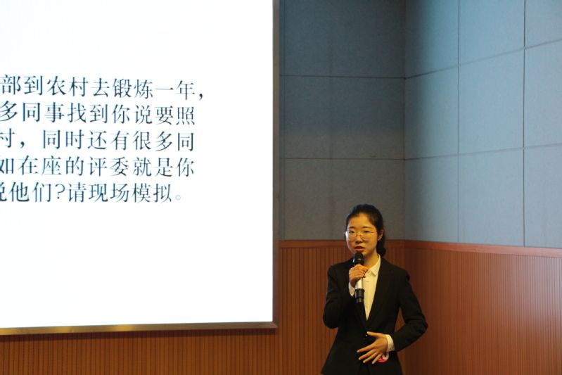 第二环节“情景模拟”中,选手们需在特定的情景下与不同主体进行对话。本环节考察了选手们的应变能力及人际沟通能力,选手们的表现得到了评委老师们的一致认可。