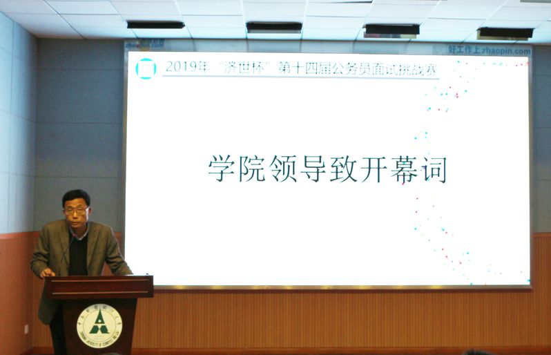 比赛开始前,熊思宏副书记为比赛致辞。他表示本次大赛的初衷是向全校有志于公务员考试的同学们搭建一个真实模拟实战的面试平台,同时帮助大家不断提高自己的综合素养,锻炼能力,形成实力、竞争力,为大家在之后真实的面试中积累经验,让参赛选手们掌握更多的应试技巧。同时熊思宏副书记也说明了本次大赛的影响力和重要性。