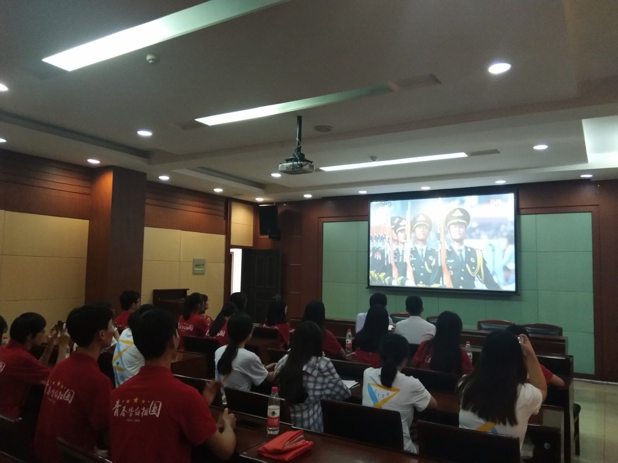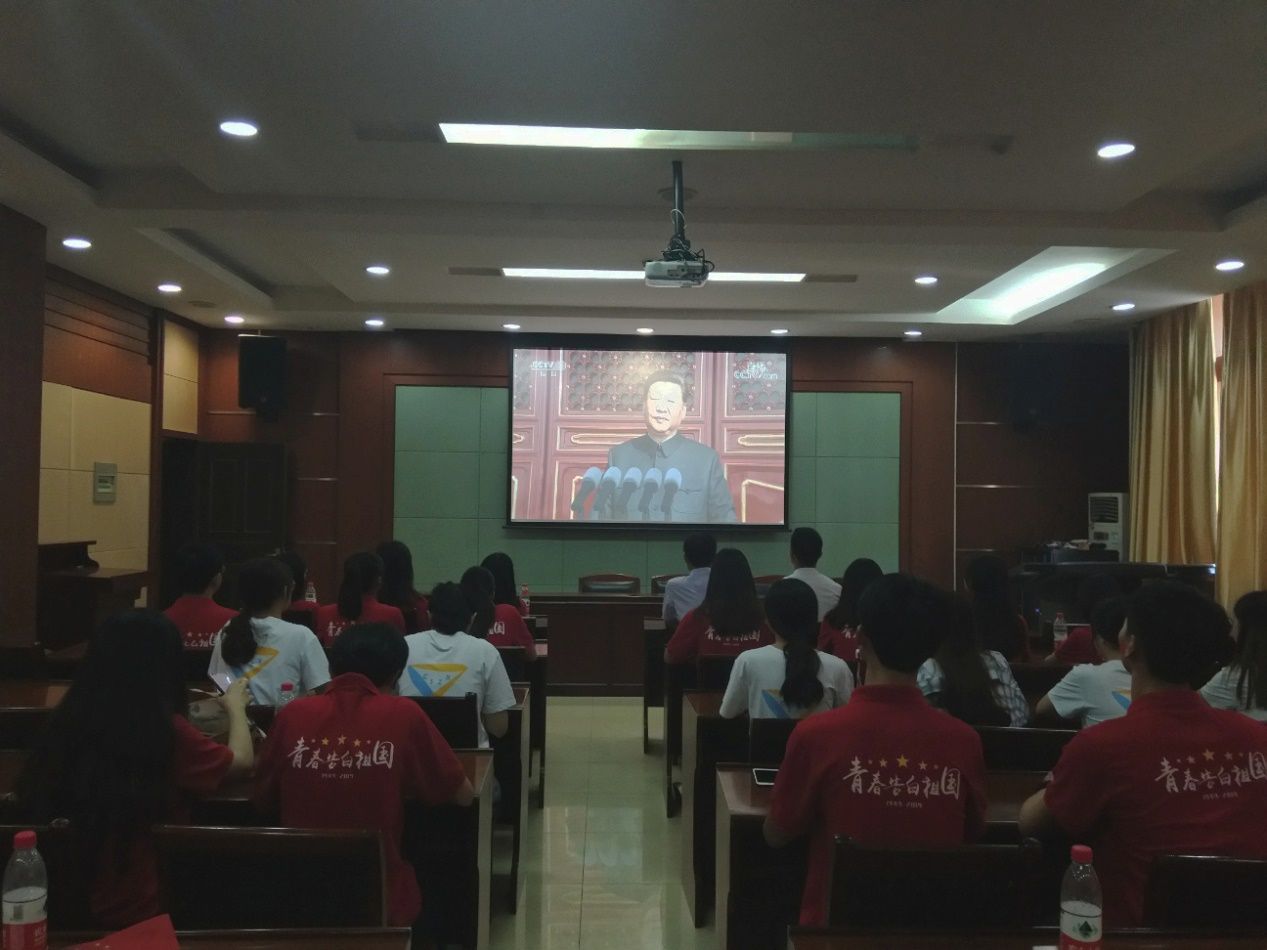 国庆庆典分为庆祝大会、阅兵仪式、群众游行三个部分。我院师生于十点开始观看庆祝大会,了解阅兵式现场队列的准备情况,认真学习习近平主席重要讲话,观看阅兵仪式。