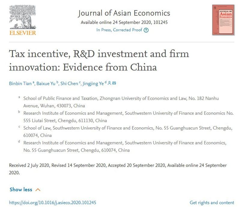 近日,国际知名学术期刊Journal of Asian Economics(双月刊,SSCI)在线发表了我院田彬彬老师及其合作者的研究成果,题目为“Tax Incentive, R&D Investment and Firm Innovation: Evidence from China”。论文以中国在2006年取消对于企业研发投入所得税加计扣除的限制性规定为背景,考察了税收激励对于研发投入,以及专利等创新产出的影响。基于中国工业企业与国家知识产权局的专利匹配数据,研究结果发现,与传统上享受加计扣除优惠的企业相比,新近获得加计扣除资格的企业在新产品的产值,以及专利数量等方面迅速缩小了与传统企业的差距。进一步的分析则表明,税负的变化是驱动上述结果的核心因素,企业对于研发投入的操纵行为并不构成对于基本结果的威胁。研究认为,推行普适性的税收优惠政策,减少“一刀切”式的政策设计,将有助于中国经济的长期发展。