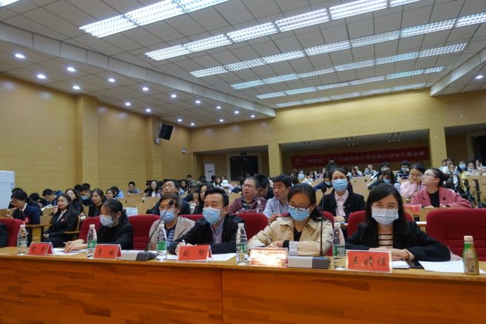 2020年11月11日晚七点,第十五届“济世杯”华图公务员面试挑战赛决赛在文潭楼一楼报告厅拉开帷幕,出席本次大赛的领导和嘉宾有湖北省财政厅人教处副处长刘刚、湖北省税务局人事处副处长肖燕、武汉市人才服务中心副主任李皓、华图教育专职培训教师王婧煜、结构化面试专职教师袁桃景、教育专职培训教师雷奇、米兰电竞·(中国区)人事部部长刘刚、米兰电竞·(中国区)就业指导中心副主任向敏、米兰电竞·(中国区)财政税务党委书记张永清、财政税务学院党委副书记熊思宏以及财政税务学院学生工作办公室的各位老师。