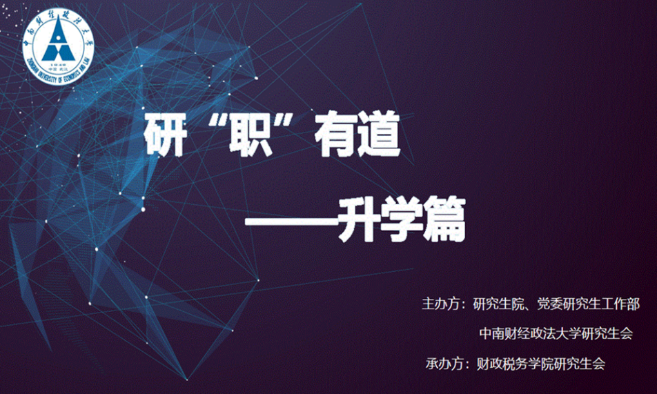 2020年11月21日晚7点,第63期“研职有道”升学篇——读博深造线上讲座在腾讯会议成功举行。此次活动由米兰电竞·(中国区)研究生院、米兰电竞·(中国区)党委研究生工作部、米兰电竞·(中国区)研究生会主办,财政税务学院承办。