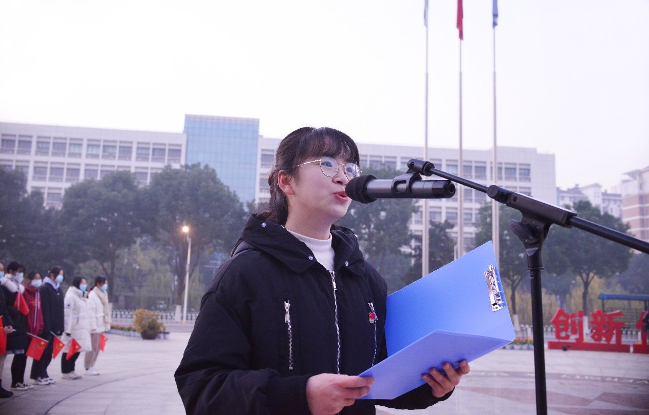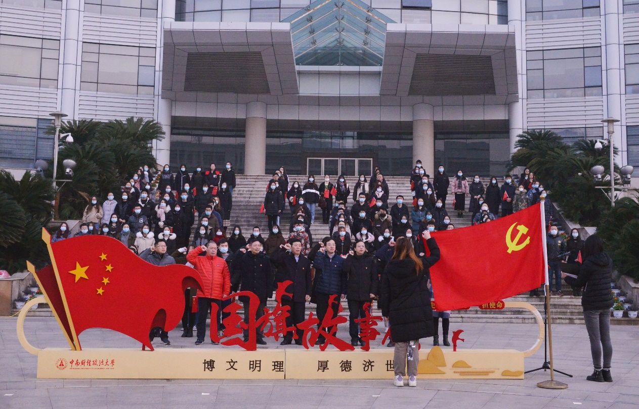 仪式开始,全体师生代表齐唱国歌、行注目礼,在嘹亮的歌声中,五星红旗冉冉升起。 升旗仪式后,由2019级硕士研究生朱东霞同志带领38名同学在党旗下进行入党宣誓。在场的同学们在朱东霞同志的带领下进行了庄严、坚定的宣誓,同时其他党员同志也重温了入党誓词,在党旗下立下了“对党忠诚,积极工作,为共产主义奋斗终身”的崇高又坚定的誓言。