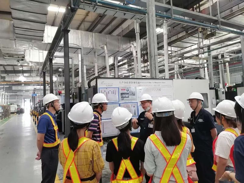 师生们还在邓总经理的陪同下参观了生产车间,初步了解了工厂零部件加工生产和制造的运行体系;财务经理吴倩和人力资源经理陈明还和学生们进行了分组交流,初步介绍了各部门的管理工作流程和要求,并解答了同学们对将要进行的夏令营活动所提出的相关问题;双方还共同举行了财税学院“读懂中国——新时代青年党性修养基地、财税专业人才培养实践基地“在威斯卡特工业(中国)有限公司的授牌仪式,至此,本次学习参观考察活动圆满落幕。