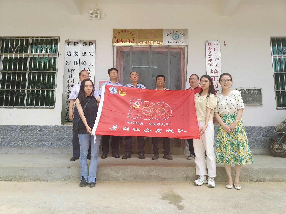 7月5日,财政税务学院“振兴乡村、青年先行”社会实践队前往广西壮族自治区南宁市隆安县乔建镇培正村开展校友寻访社会实践活动。校纪委副书记蔡明辉、博士生导师陈志勇教授、院党委书记张永清、院团委书记韩睿子、院2019级研究生党支部书记刘紫斌、优秀共青团员李思琪一行六人前往培正村寻访财政税务学院2016级财政学专业优秀校友、乔建镇包村工作队长、培正村第一书记刘志远同志。财政税务学院2016级财政学专业优秀校友、南宁市上林县镇圩瑶族乡排红村主任助理李孟璘一同参加。