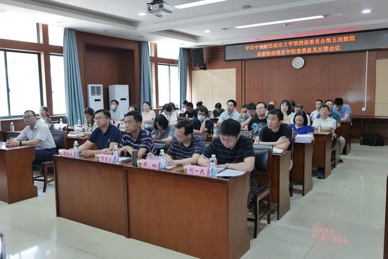 7月7日上午,校党委第五巡察组在我院召开巡察意见反馈会议。校纪委副书记、党委巡察办公室主任赵凯、副主任潘丰文、秘书刘一民、校党委第五巡察组组长胡海南、副组长于方、王芹、学院领导班子全体成员、院党委委员、纪委委员、全体教授、党政管理人员、教研室主任及教工党支部书记出席会议。会议由院长张克中主持。