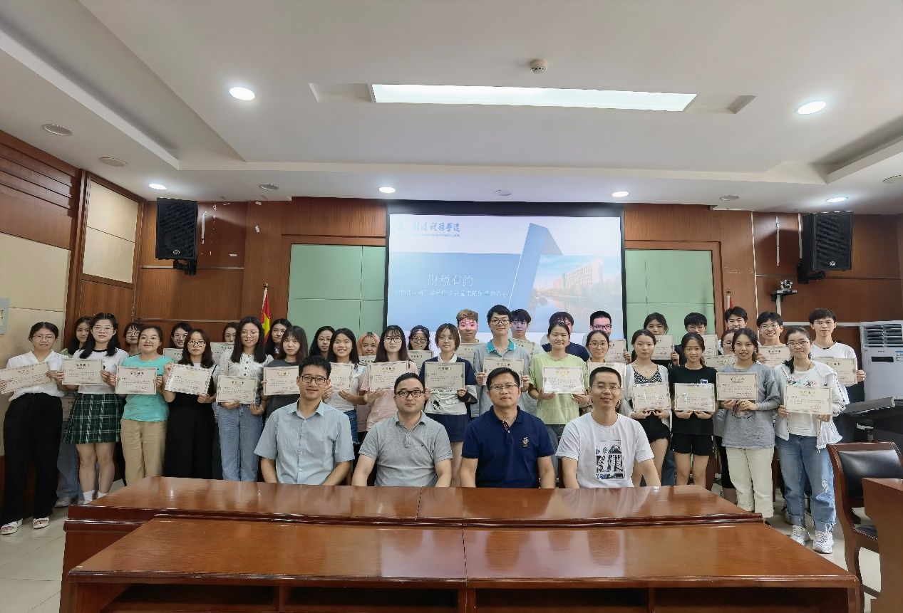 最后,中原五期成员上台领取结业证书,并与各位老师合影留念。至此,“财税有约”——中原五期学员座谈会暨文献阅读动员会圆满落下帷幕。善思善学,致知致行。希望同学们通过中原五期的学习经历,能够培养自主学习的能力,更深入地理解计量经济学的思想,并积极参与接下来的文献阅读学习,对所学知识进行更好的实践,习前辈之计量思想,绘吾辈之科研蓝图。
