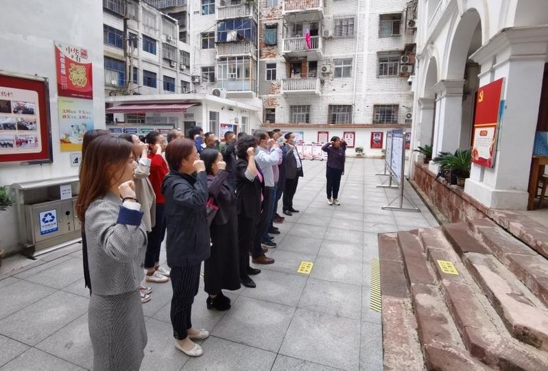 “我志愿加入中国共产党,拥护党的纲领,遵守党的章程,履行党员义务……”在院党委书记袁桂君的带领下,全体教职工党员面向党旗举起右拳,现场重温入党誓词,铿锵有力的宣誓声响彻整个军部旧址纪念馆。