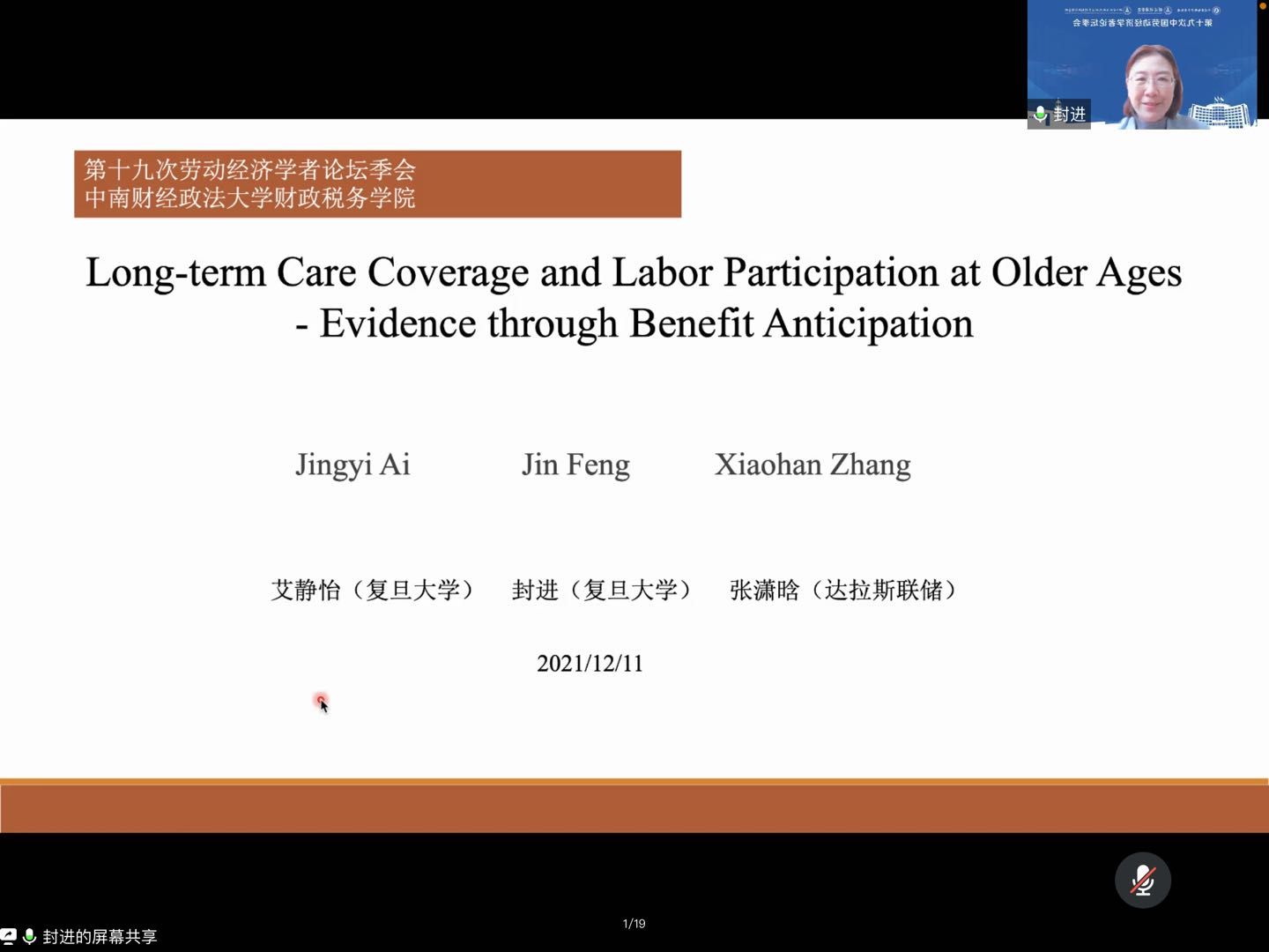 封进教授发表了题为“Long-term Care Coverage and Labor Participation at Older Ages: Evidence Through Benefit Anticipation”的主旨演讲。她基于2011年、2013年、2015年和2018年的CHARLS调查数据构建了DID模型,从生命周期的角度分析了长期护理保险对老年群体劳动参与的影响。研究发现:长期护理保险政策的实施,会使得参保人劳动参与率降低5.4%、家庭收入减少10.2%,但对消费没有显著影响。这种挤出效应在失能群体、低收入群体和女性群体中更为显著。同时,长期护理保险可以改善参保人的健康,降低其未来几年的医疗支出。