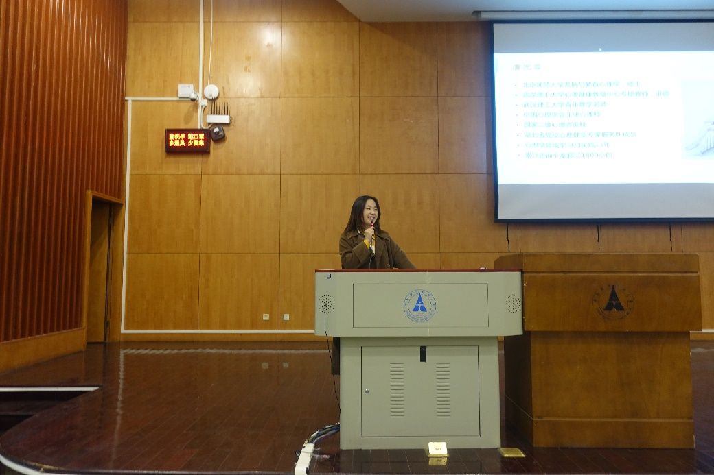 为进一步健全完善“学校-院系-班级-宿舍/个人”四级预警网络体系,充分发挥大学生在心理危机预警方面的作用,预防大学生心理危机事件的发生和发展,12月16日下午2:30,财政税务学院“‘青年心知讲坛’—大学生心理危机的识别与应对”讲座于文泰321举行,讲座由武汉理工大学心理健康教育中心专职教师唐光蓉作为主讲, 2019级、2020级宿舍长及党团骨干参加会议。