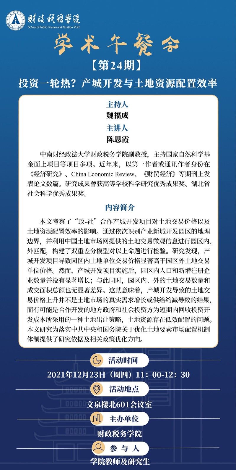 【讲座预告】学术午餐会(第24期)