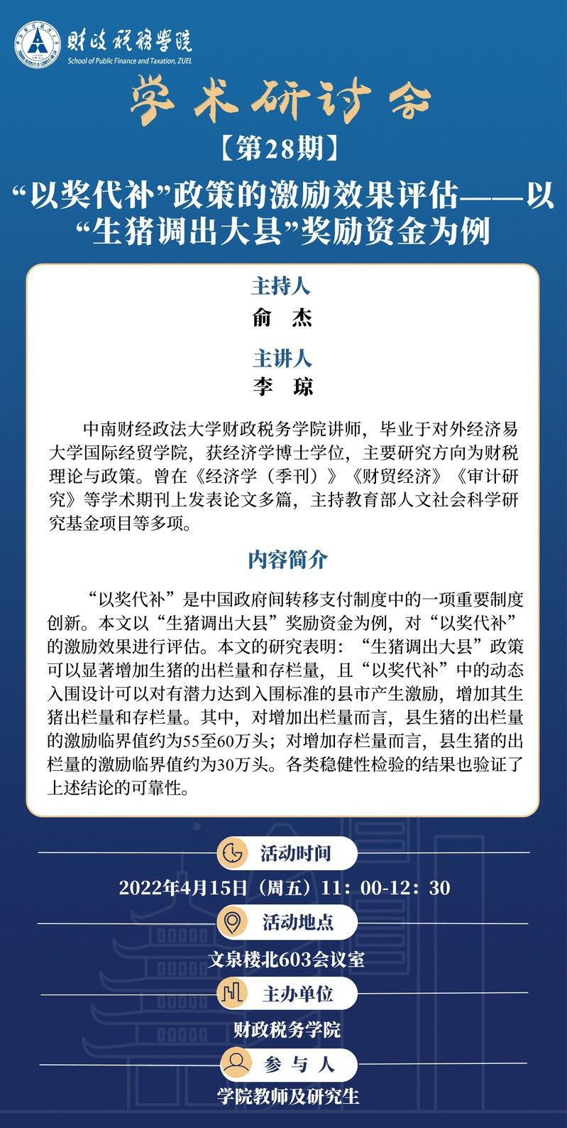 【讲座预告】学术研讨会(第28期)