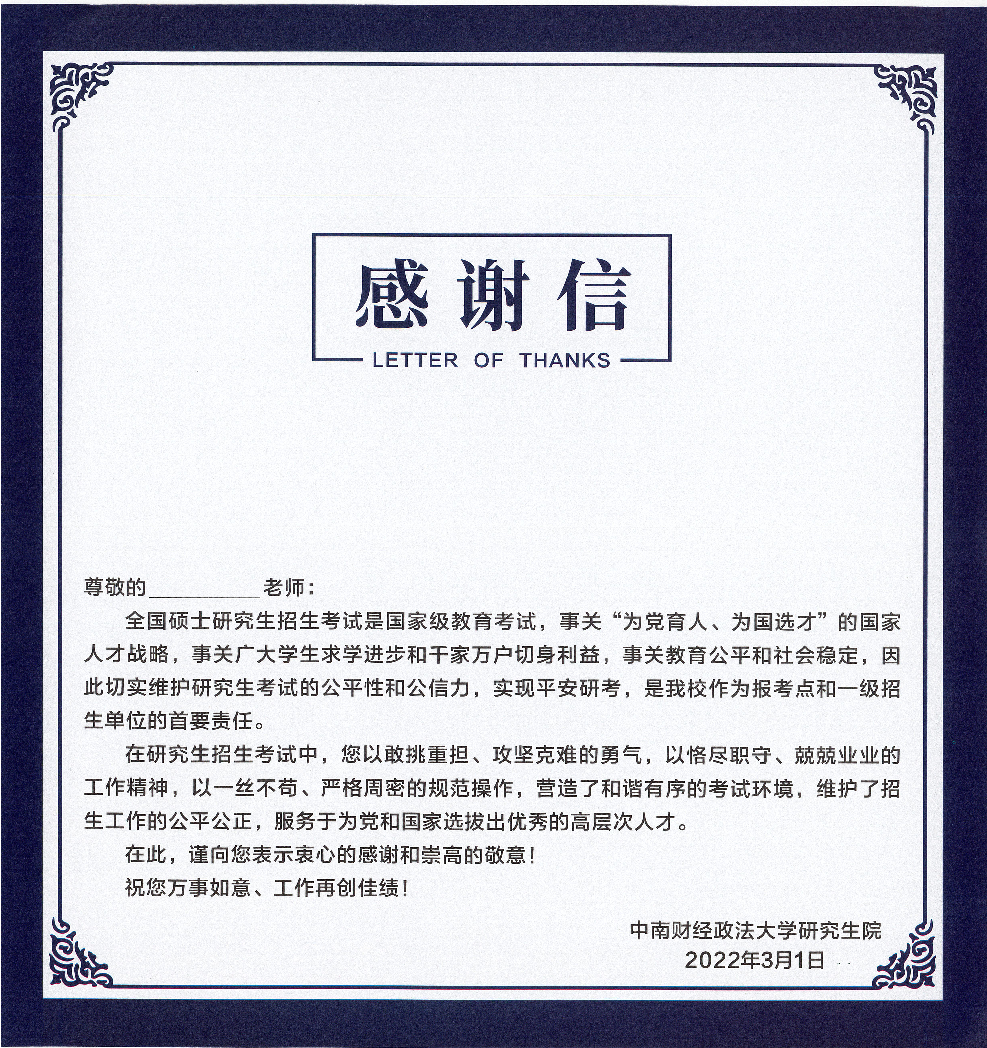 本次致信是研究生院对我院研究生工作战线上教师员工的慰问和肯定。向无私奉献的老师们致敬!