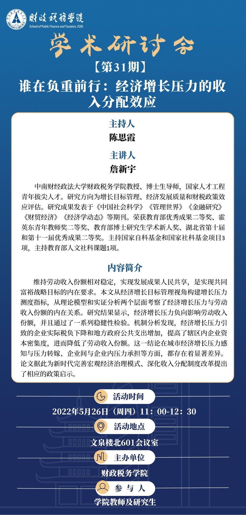 【讲座预告】学术研讨会(第31期)