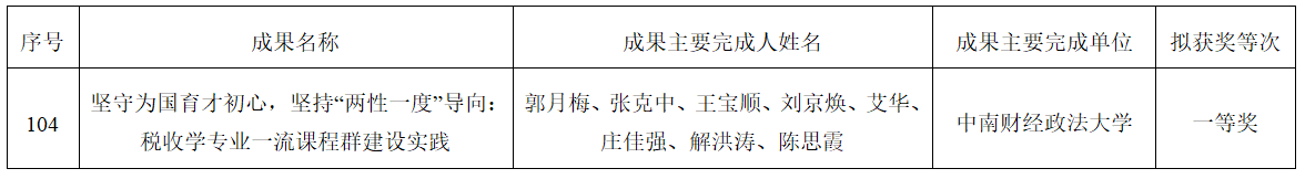 第九届湖北省高等学校教学成果奖我院拟获奖名单