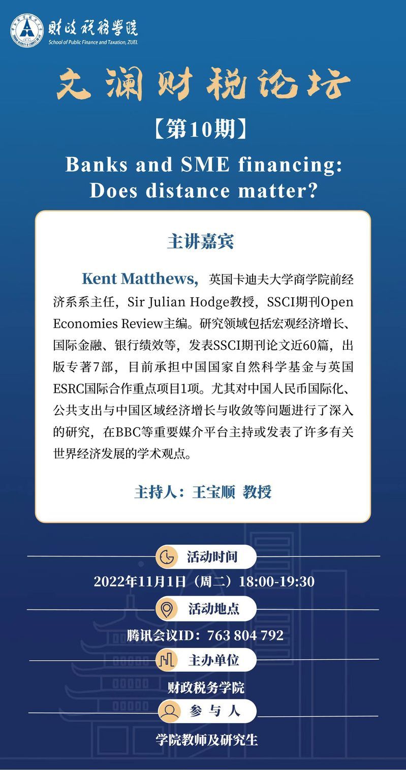 【财税论坛(第10期)】Kent Matthews:Banks and SME financing—Does distance matter?