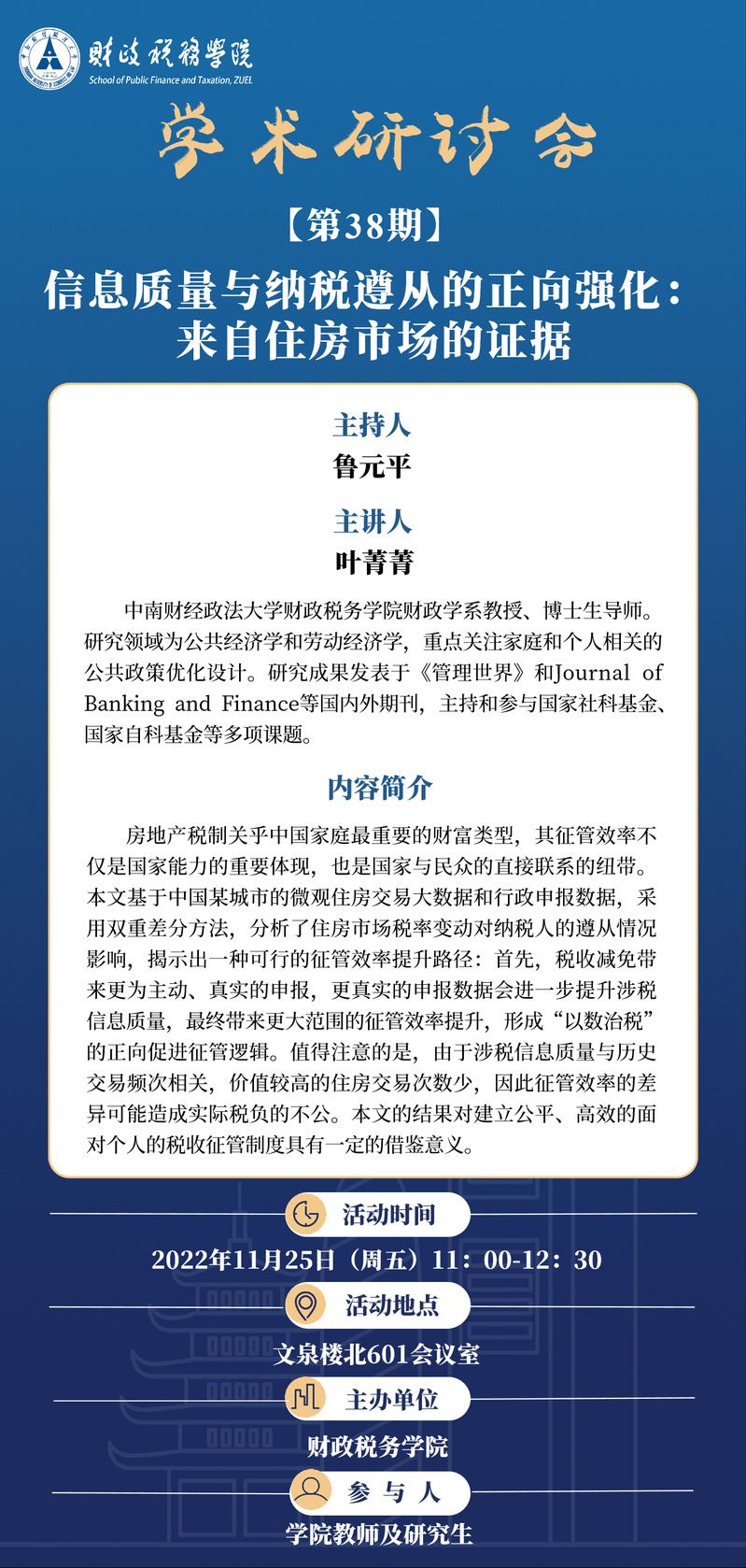 【讲座预告】学术研讨会(第38期)