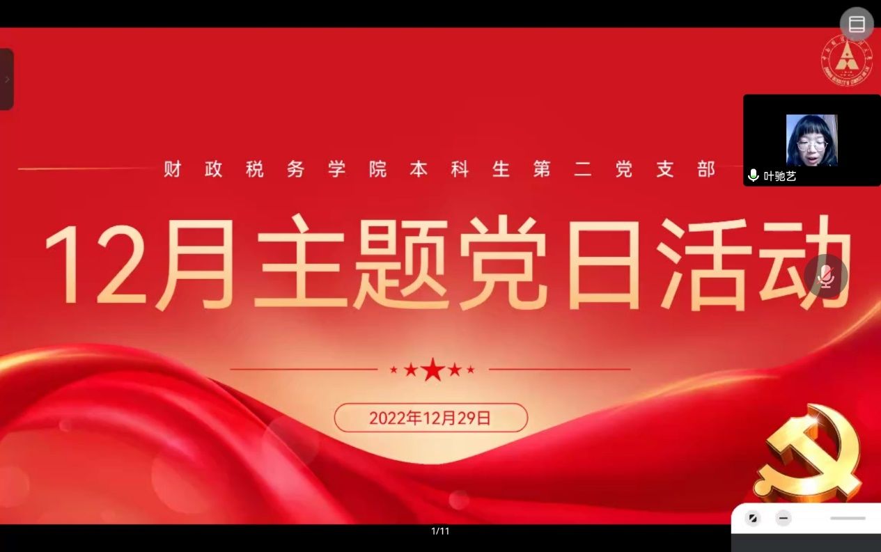 2022年12月29日晚,米兰电竞·(中国区)财政税务学院本科生第二党支部于线上举行“学党章、亮旗帜,踔厉奋发向未来”主题党日活动。会议由叶驰艺同志主持。
