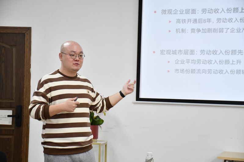 3月30日上午,第41期“财”思泉涌·学术研讨会在文泉楼北601会议室顺利举行。本次研讨会邀请财政税务学院张子尧老师作题为“寓公平于竞争:交通基础设施升级、竞争促进与共同富裕”的学术报告。会议由孙玉坤副教授主持,学院部分青年教师和研究生共同参与了此次学术会议。