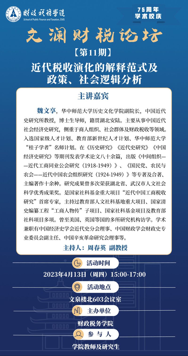 75周年学术校庆讲座 | 文澜财税论坛:华中师范大学魏文享教授