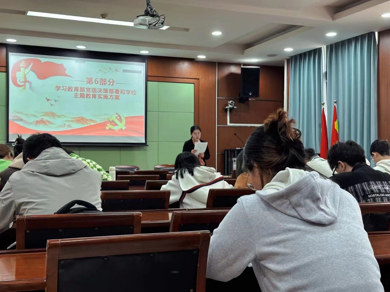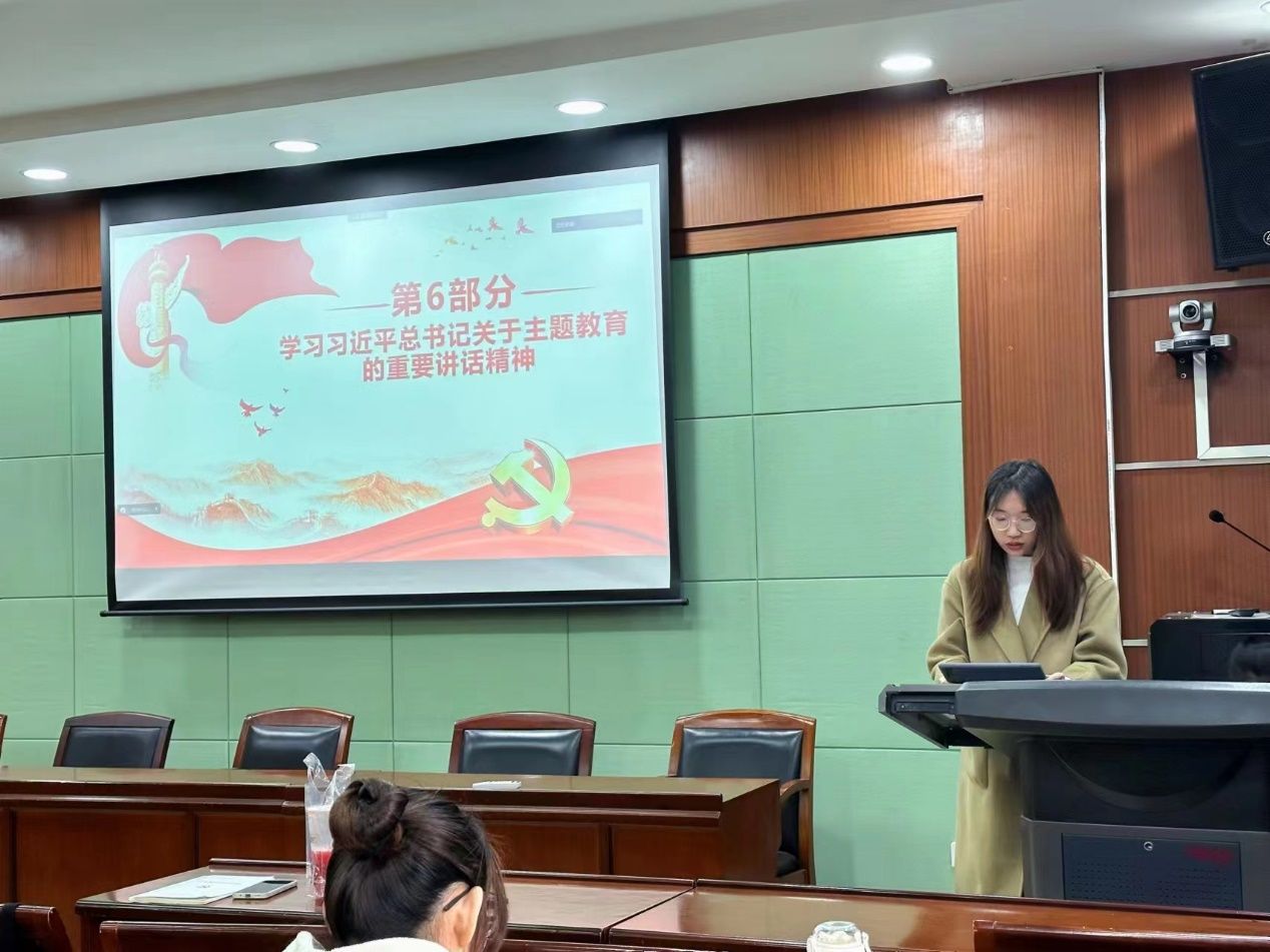 为深入学习贯彻习近平总书记关于主题教育的重要讲话精神和党中央、教育部党组决策部署,牢牢把握“学思想、强党性、重实践、建新功”总要求,4月25日中午,财政税务学院本科生第二党支部于文泉北403,组织支部党员开展第一期“读•讲•行”主题党日活动。活动由赛比热·艾斯凯尔同志主持。