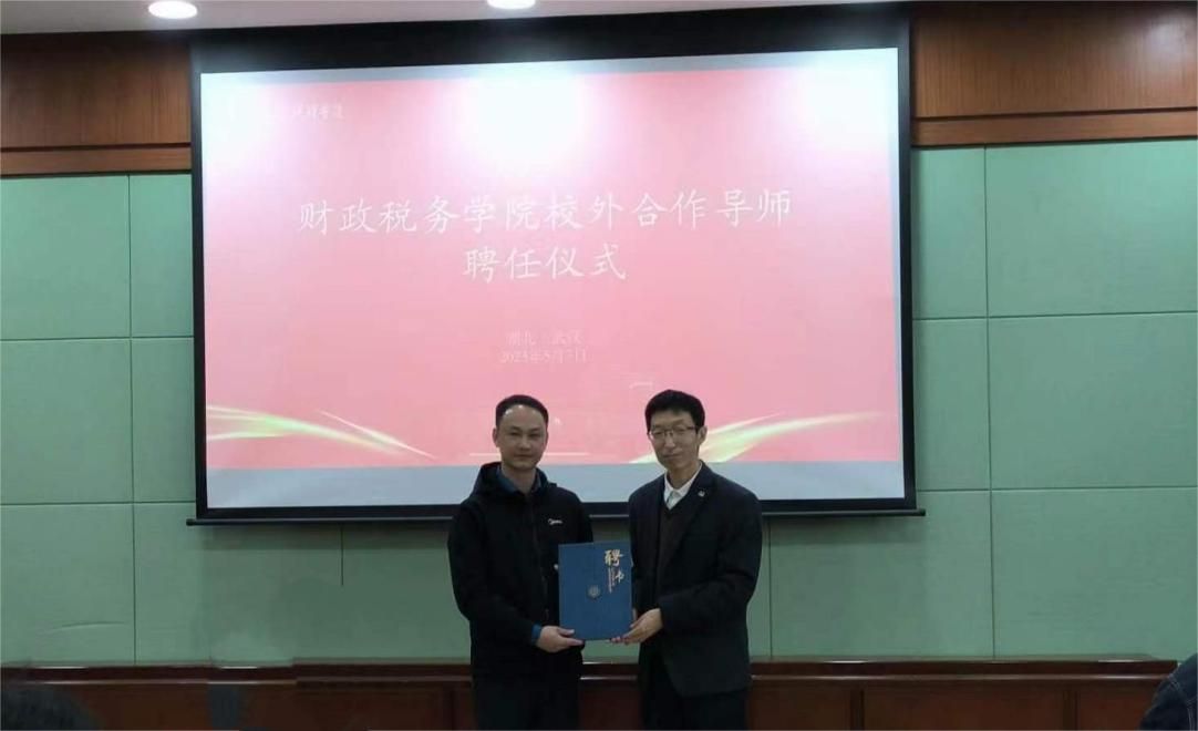 2023年5月7日上午,“青春面对面 校企共远航”民营企业财税管理实践分享会于文泉楼北403会议室举行。本次活动邀请现任美的集团全球税务共享总监、我校07级校友陈志文为我院师生进行分享,财政税务学院副院长薛钢教授、院党委副书记吴兴华老师、税务专硕中心主任解洪涛教授以及学生工作办公室老师参加此次活动,活动由学院党委副书记吴兴华主持。活动伊始,解洪涛教授为陈志文校友颁发校外合作导师聘任证书。