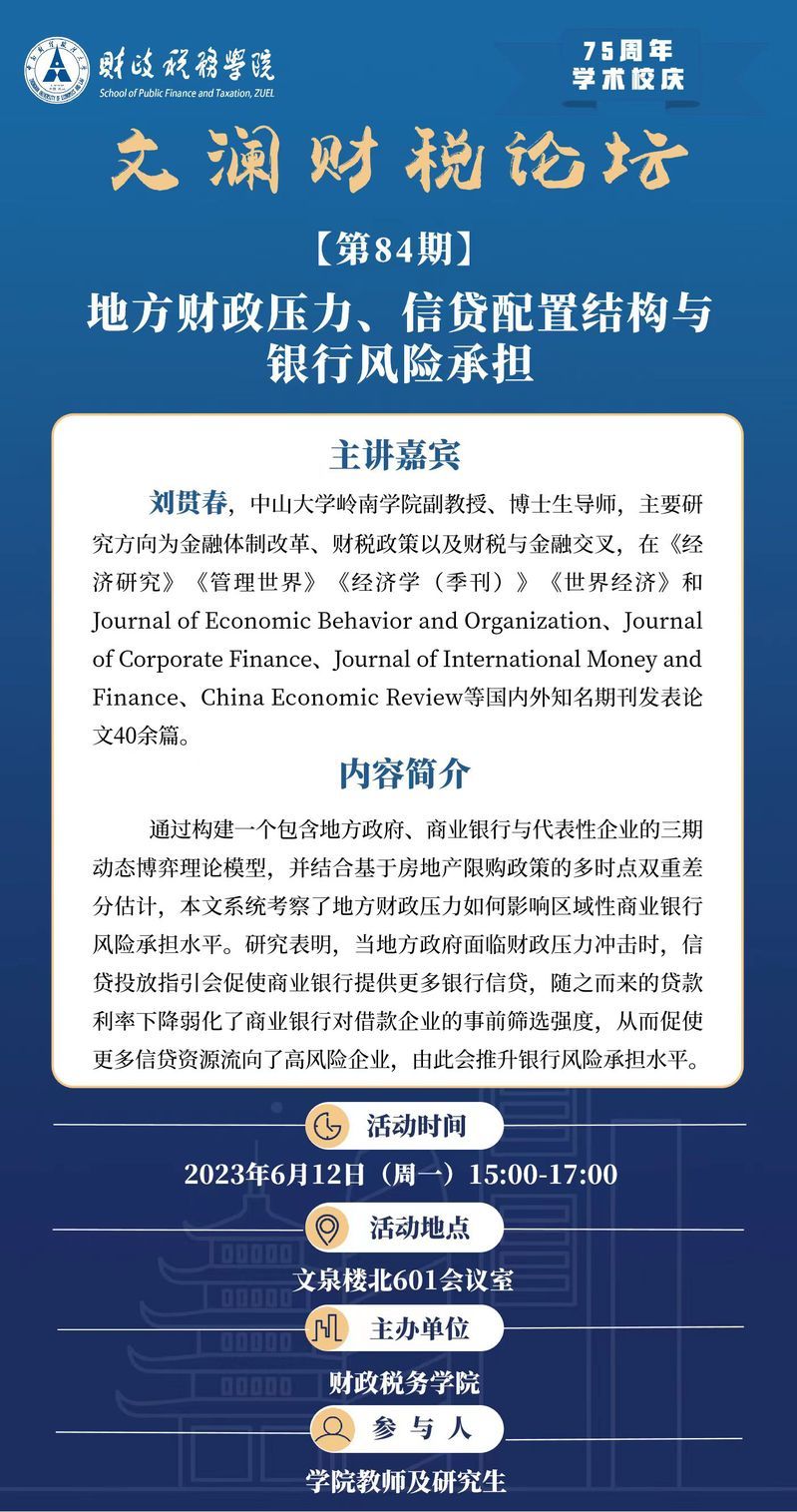 75周年学术校庆讲座 | 文澜财税论坛(第84期):中山大学刘贯春副教授
