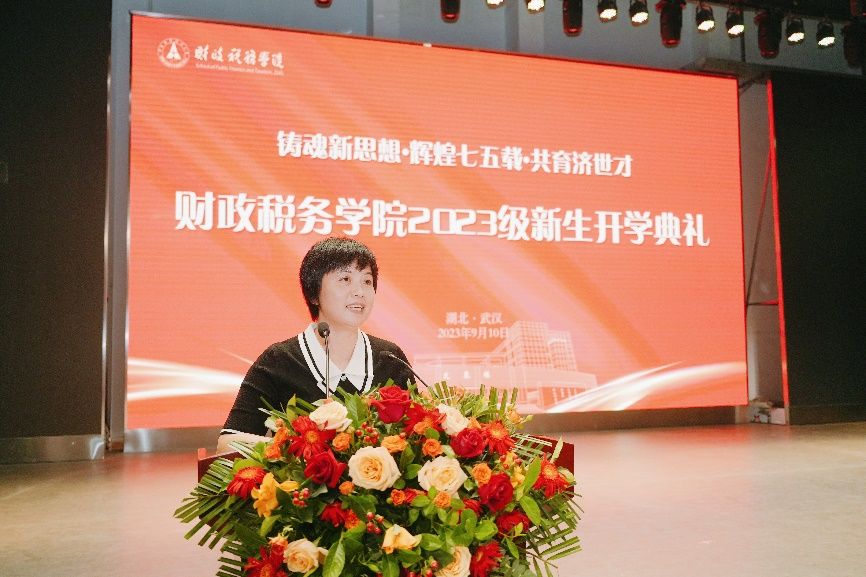 9月10日上午10点,财政税务学院“铸魂新思想·辉煌七五载·共育济世才”2023级新生开学典礼于南湖会堂顺利举行。本次典礼由财政税务学院党委书记袁桂君主持,财政税务学院院长张克中教授、副院长薛钢教授、院党委副书记吴兴华老师、我院财政学专业1979级校友滕忠勤先生、教师代表吴雷教授、新生家长代表吴安平先生、2023级新生班导师及全体辅导员出席。