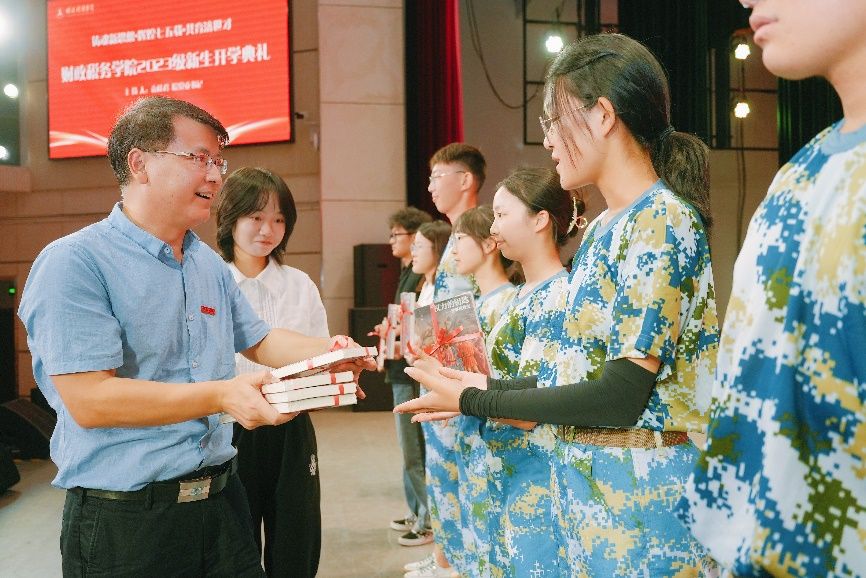 随后,张克中院长向2023级新生赠送《权力的钥匙——世界税收史》一书。这些书激励着新同学们在了解专业知识的同时,奋勇前进、追求卓越,始终保持对知识的渴望以及对学习的热情。