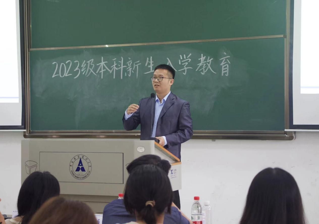 随后,由各班导师上台给大家做经验分享。首先,2303班导师庄嘉霖老师向同学们介绍了自己的研究方向,同时他表示作为一名青年教师,希望与大家共同进步共同成长,也希望同学们都能拥有四年充实而又精彩的大学生活。