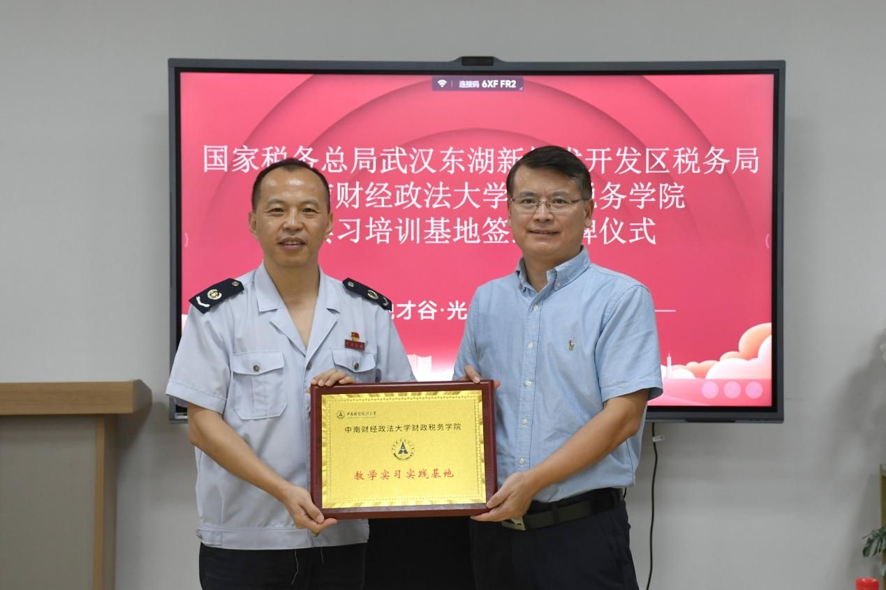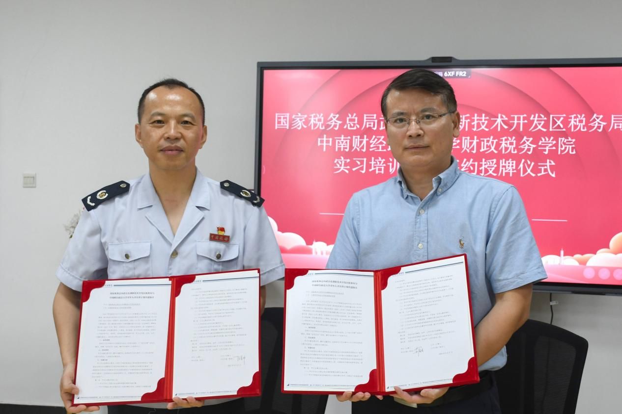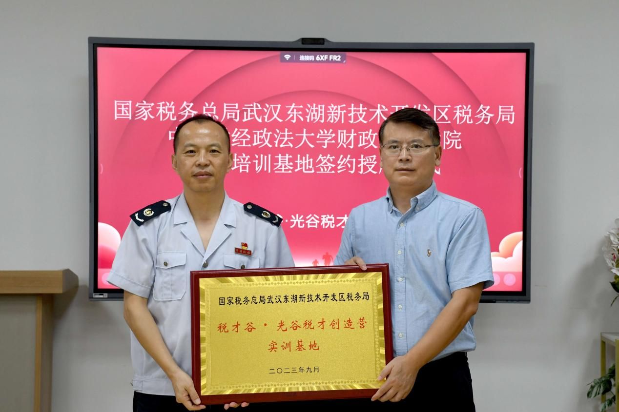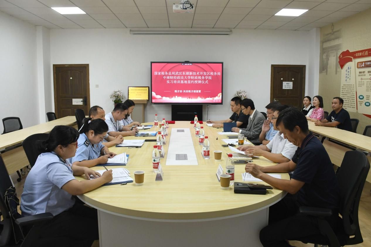 2023年9月27日下午,我院与国家税务总局武汉东湖新技术开发区税务局实习培训基地签约挂牌仪式在文泉北601会议室成功举行。国家税务总局武汉东湖新技术开发区税务局党委委员、副局长、三级高级主办苏厚佳,货物和劳动税科科长魏莱,组织人事科科长韩云姬,左岭税务所所长叶颖,组织人事科副科长安露露出席了签约授牌仪式。财政税务学院院长张克中、党委副书记吴兴华、税务硕士教育中心主任解洪涛、高端培训中心主任张朝举、党政办公室主任唐皓参与授牌仪式。仪式由党委副书记吴兴华主持。
