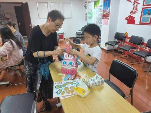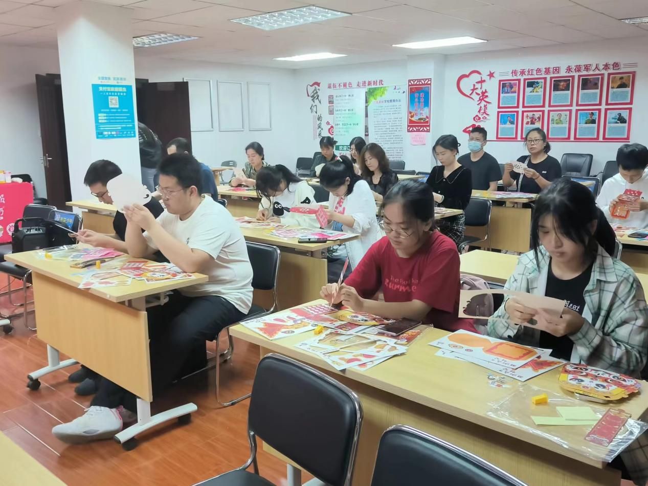 在制作兔爷非遗花灯环节,指导老师为大家讲解了中秋节的起源、发展历程和主要习俗,并手把手的教大家制作非遗花灯。通过一步步折叠、固定、组装,不一会一个个精美的兔爷花灯就呈现在大家面前。大家你一言,我一语,相互分享交流自己的成果,很是热闹。社区年轻的党员、共青团员工作者和志愿者们还在花灯的卡片上,写下了清廉警句和中秋祝福话语。